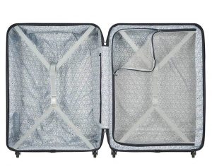 Bagage kan je in de koffer ordenen door de twee paar elastische inpakriemen vast te maken. Ook zit er een tussenschot tussen om je bagage gescheiden te houden. De binnenkant van de koffer heeft een elegante voering.