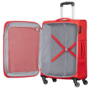 Een zachte spinner van American Tourister. Verkrijgbaar in het rood, zwart, licht of donker blauw. De Joyride collectie is voorzien van een speels design en gebruiksgemak. Zo kan je bagage goed opbergen met zijn gekruiste inpakriemen.