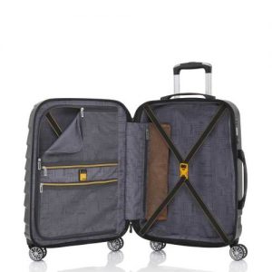 Met deze koffer krijg je een TSA-slot die je bagage goed beveiligd, twee stevige handvatten, een telescopische trekstang en een interieur voorzien van pakriemen en een tussenvak met extra vakken.